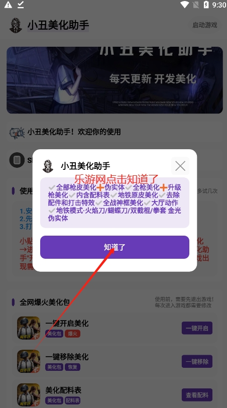 小丑美化助手是一款为游戏玩家设计的界面与道具美化工具。它可以帮助用户优化游戏画面清晰度,提供多种武器、角色皮肤等道具资源。操作过程简单便捷,包含一键开启和移除美化功能,资源每日更新。所有功能均可免费使用,无需付费即可获得个性化游戏体验。欢迎体验这款实用工具,轻松打造专属视觉风格。
