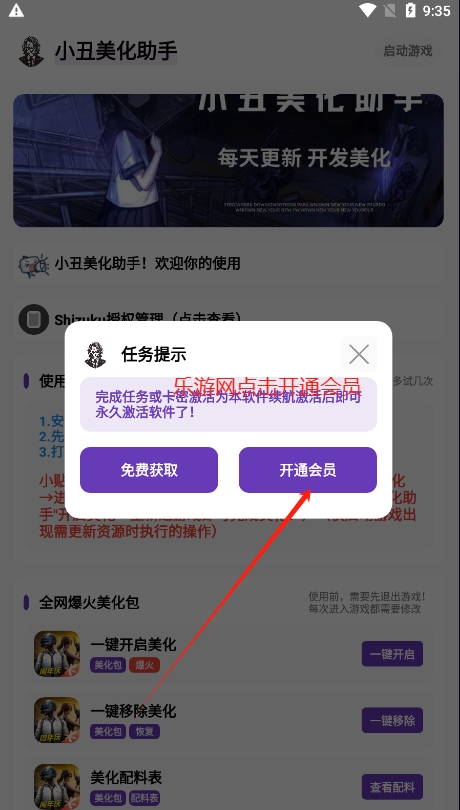 2、在首页界面选择你想要使用的美化包资源“一键开启”。