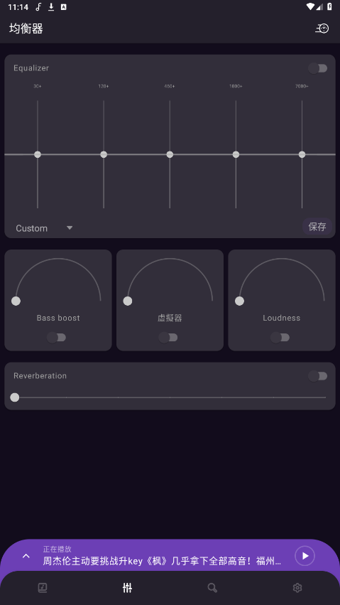 强大的均衡器让你可以根据自己的喜好定制声音。在音频播放器中有许多预设,但你也可以创建和保存你自己的设置。混响功能可以让你感受到在大房间里听音乐的气氛。我们的均衡器的另一个优点是可以改变音乐播放的速度和音调。