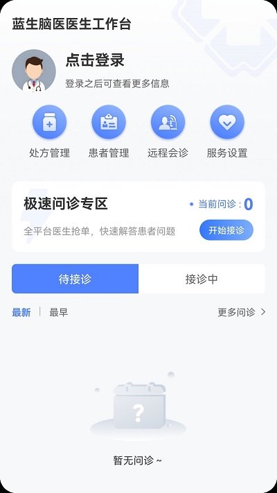 蓝生脑医医生版手机版是一款专为医生打造可以在平台上进行接诊的全新办公软件,同时平台中医生也可以管理自己患者,随时都可以查看详细患者详细情况,方便进行记录跟踪病情,软件提供丰富功能可以提供效率,有需要的话就来下载试试吧!