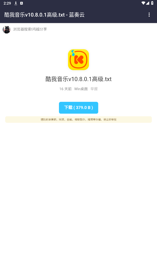 进入软件分享详情页面,点击下载