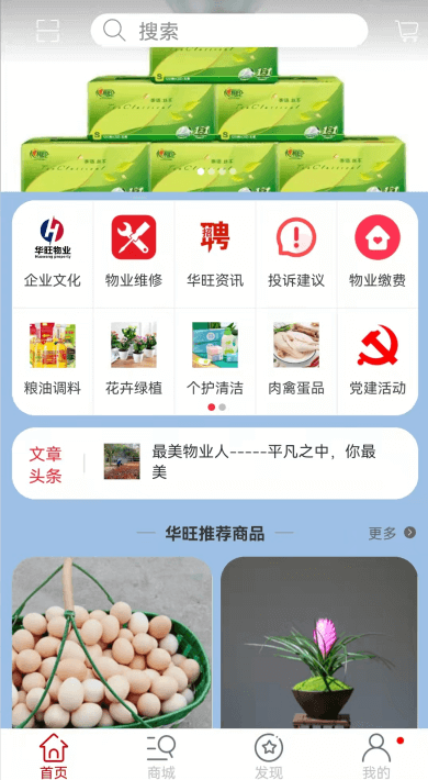 3.华旺商城,精选商品,宅配服务,水、生鲜、米面粮油,日用商品,自主预定购买,配送到家等多种服务持续升级。