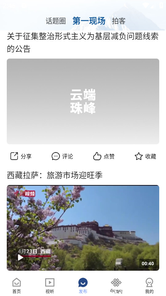 《云端珠峰app》是西藏自治区首个逐一浏览模式、用户自定义主页的APP,支持国家通用语言文字以及藏语言文字的呈现和混排。它集资讯、音视频、广播电视网络直播为一体,是西藏各级融媒体权威信息发布平台、政务服务入口。提供最新的涉藏主流新闻报道、资讯信息,让用户随时了解西藏的最新动态。实现客户自定义模式,围绕用户的兴趣爱好智能化推送内容,让每一次的观阅都能收获价值。