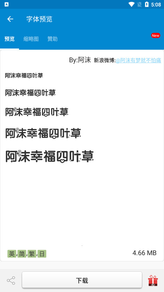 爱字体是一款全新的手机字体美化软件大师,集成上百款精美可爱的中英文字体,最新最全的英文、简繁体字库。