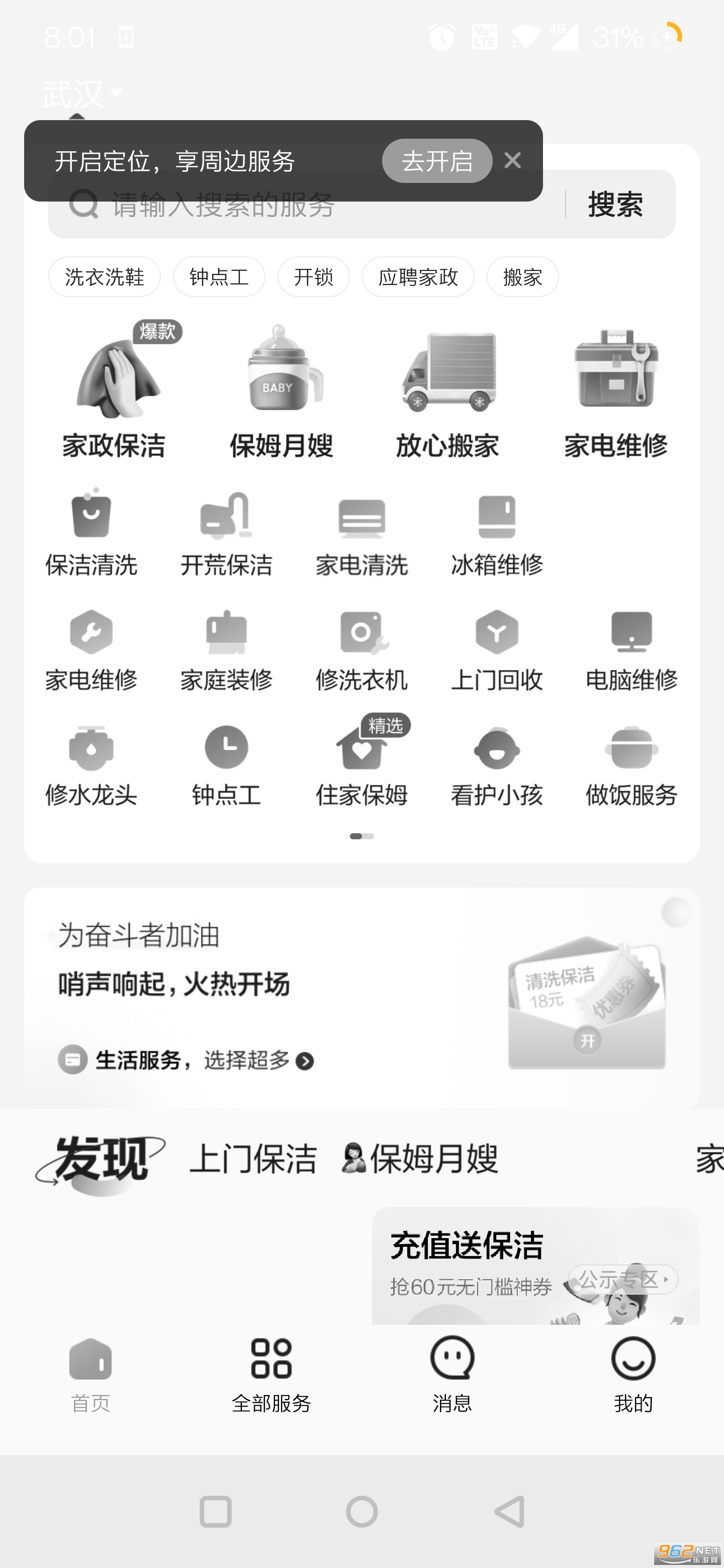 58到家国民生活服务平台。提供百余类高品质生活服务,包含保洁清洗、保姆月嫂、家电维修、搬家速运、洗衣洗鞋等家庭服务品类,为您提供专业、优质、有保障的一站式生活服务,随叫随到,为您解决生活中的小麻烦。