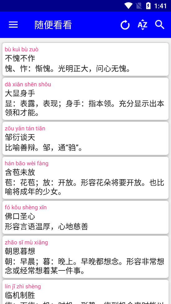 汉语成语词典App,是您探索成语世界、提升语言素养的必备工具。无论您是学生、教师,还是对中国文化感兴趣的爱好者,都能在这里找到属于自己的学习乐园。让我们一起,在成语的海洋中遨游,感受中华文化的独特魅力!