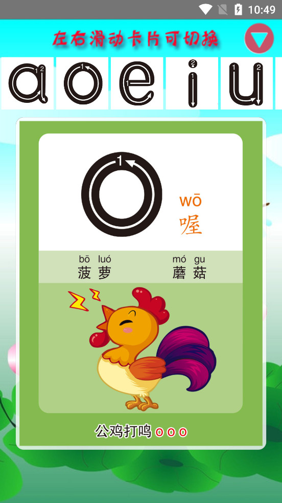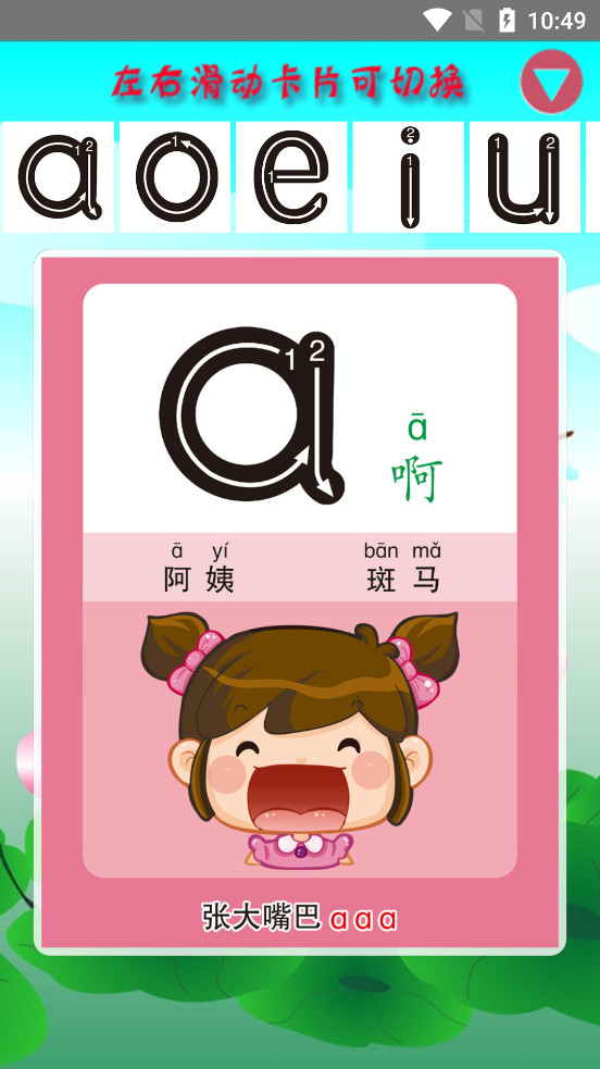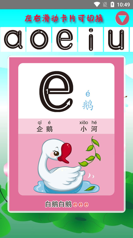 点击【认知卡】,然后左右滑动可以学习简单的拼音