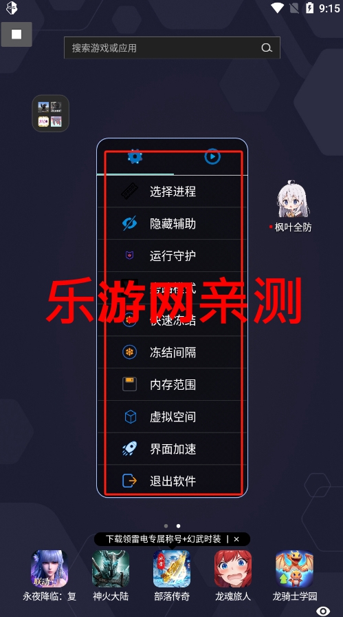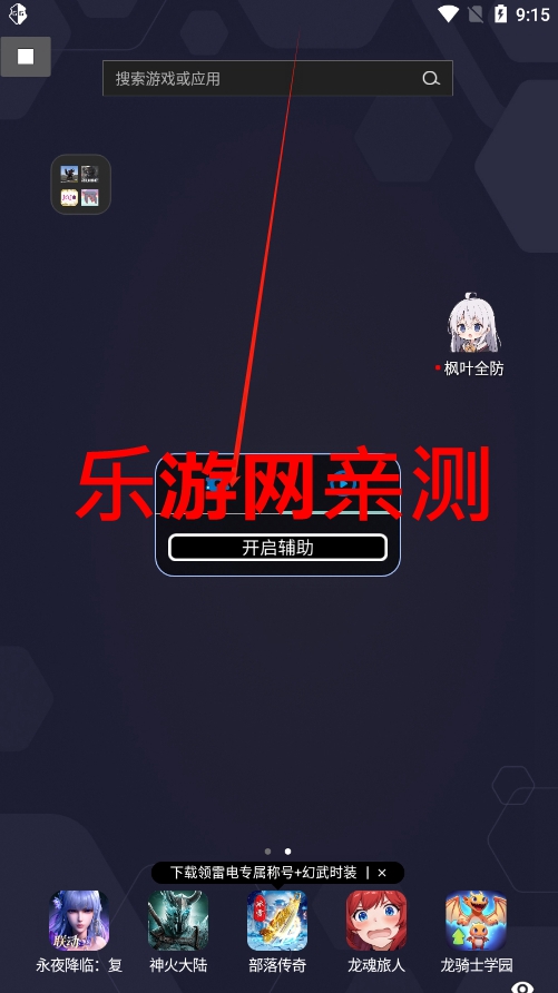 完成后返回设备首页,会发现应用所在位置左上方多了一个图标,点击开启辅助并在设置栏修改各项参数,之后进入软件菜单界面选择开始并添加游戏启动即可使用。