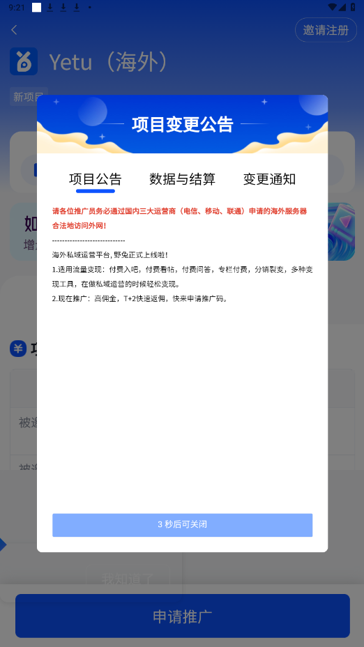 这里汇聚了丰富的推广项目,提供一站式项目拉新、数据统计、管理及培训服务,助力各类推广团队实自身价值。