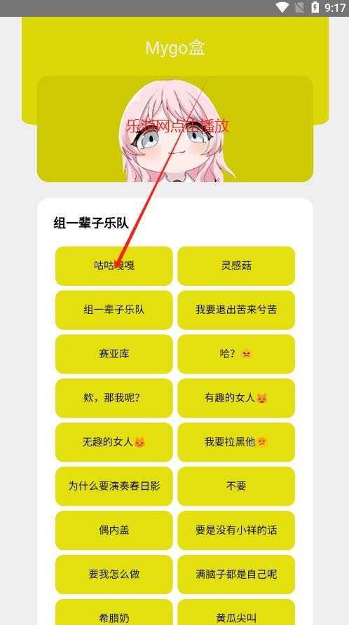 1、进入Mygo盒后,可以看到很多的语音分类,点击字样就可以聆听对应的语音发声。