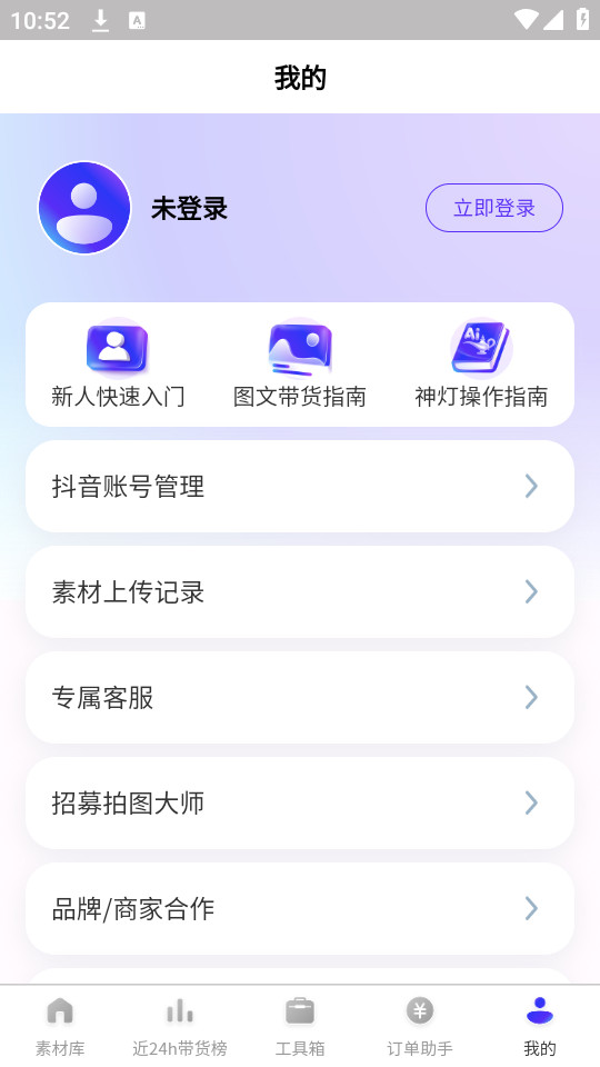 《神灯素材助手》是一款功能丰富且实用的素材管理工具,专注于为用户提供各类文案、图片、视频等素材资源。提供丰富多样的文案、图片、视频等素材资源,满足用户在不同场景下的创作需求。素材库每日更新,确保用户能够获取到最新、最热门的素材资源。支持通过关键词搜索相关素材,快速找到所需资源。提供下载功能,用户可轻松将所需素材保存到本地,方便后续使用。内置多种专业的创作工具,如视频剪辑、合成等,帮助用户轻松制作出高质量的作品。