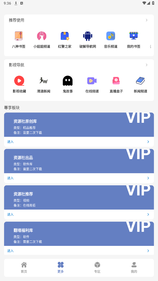 2、在首页可以看到很多资源分区,根据自己的需求进行进入