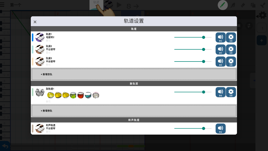 丰富的作曲工具提供有笔功能、橡皮功能、指尖功能等,支持作成音符、改变音程以及去除音符等等