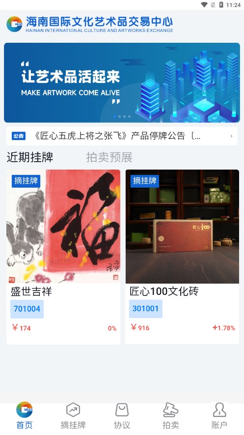 海文交是一个服务于全球文化艺术品爱好者、收藏家、投资机构的手机移动端应用。通过充分利用海文交的平台优势,并结合线上线下一体化的运营方式,主要以“摘挂牌”和“协议与拍卖”两种方式对文化艺术品进行交易。