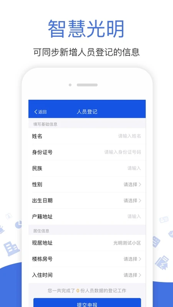 光明警务助手app为广大警务从业者设计的手机软件,大家可以使用这款软件轻松的管理社区人口,这款软件私密性极高不会泄露人员信息,可放心使用,帮助警务处登记管理人员,让你大家的工作更加轻松有条不紊的进行。