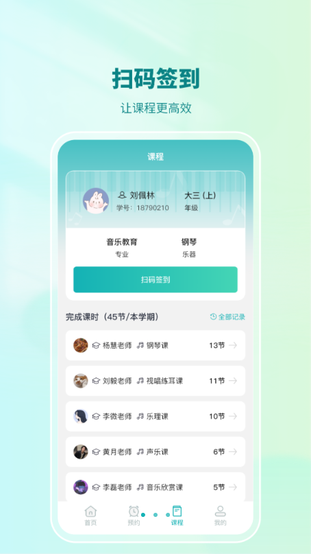 扫码上课:上课签到实时记录,数据精准分类。