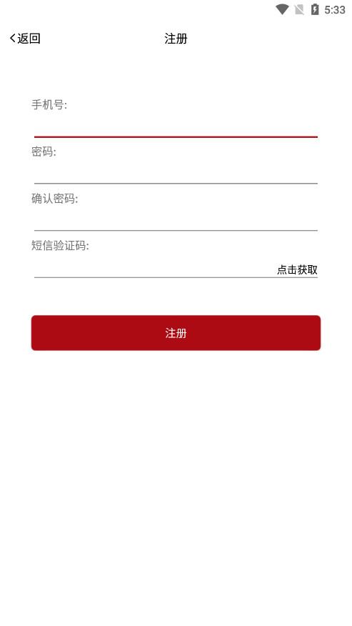 2、输入本人使用手机号码,输入你要使用的登录密码,点击获取验证码之后,便可完成账号的注册。