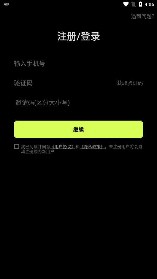 3、输入本人所使用手机号码,获取验证码并输入,邀请码可选填,即可完成登录操作。