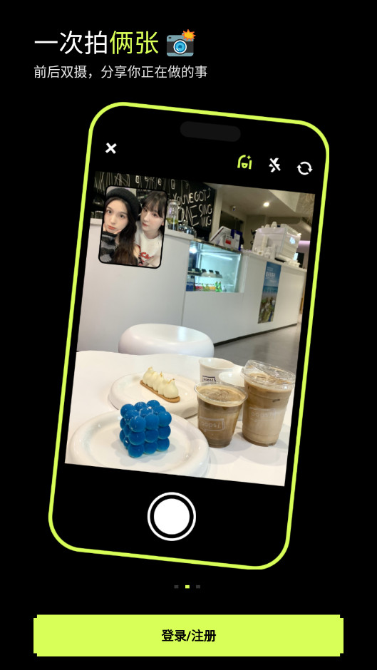 记录你的真实生活,点击拍照,按住即可拍视频,快速定格美好瞬间。