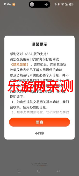 1、下载安装乐游网1688 AI版软件,查看温馨提示内容部分,点击“同意”进入。