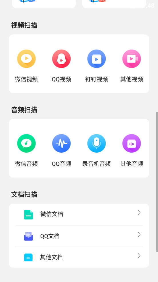 音频深度扫描查找:手机自带录音查找导出、/QQ音频查找导出;