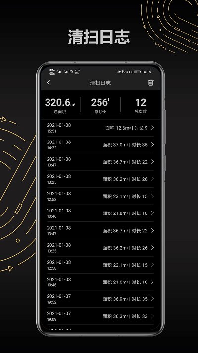 5、进行清扫日志记录,用户可在app内查询历史清扫日志,掌握相关信息;