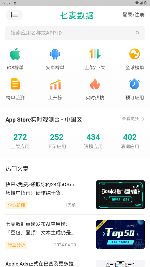 提供iOS&Android双平台榜单实时查询,最新排名、变化趋势、竞品榜单动态一网打尽,且数据更准确、更全面。