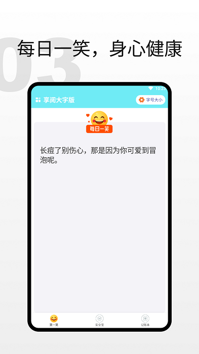 满足中老年人资讯阅读,休闲娱乐的需求,丰富精神文化世界。通过大字体的设计,缓解用户阅读时的眼部疲劳,放大字体看新闻看视频更清楚,享受阅读过程。快来下载试试吧!点击下方就能下载了哦!