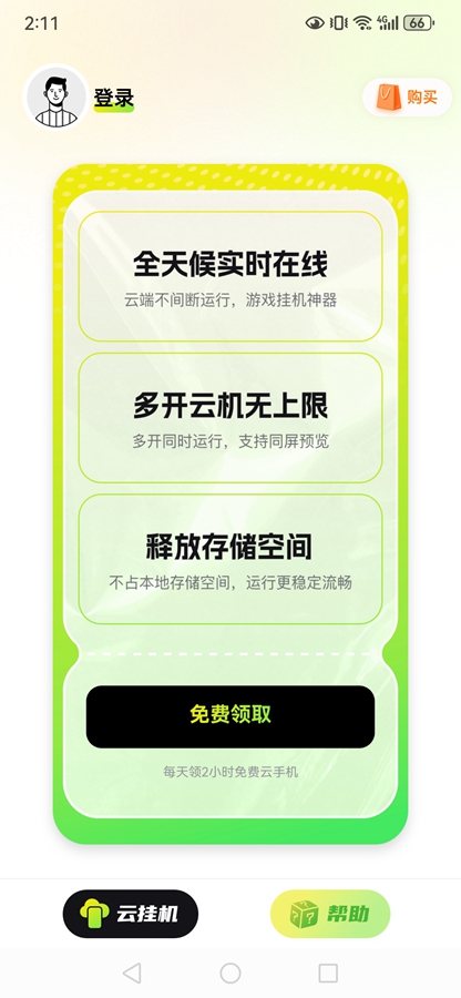 1.7*24小时云端持续在线,智能熄屏托管,离线挂机免流免电!
