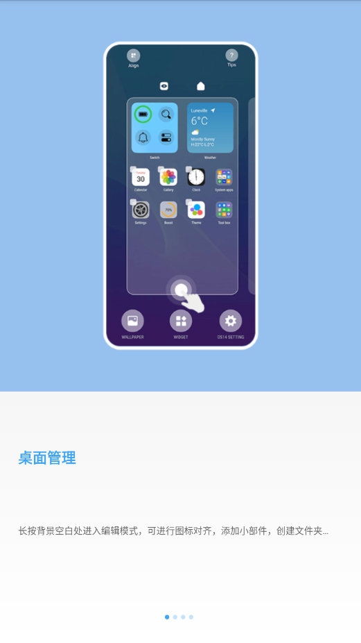 OS14桌面是一款能够让安卓手机高仿ios14的启动器,app已经为您设定好各种ios样式,只需简单安装即可让自己的安卓手机体验到IiPhone同样的界面,让只有安卓手机的同学也够尝鲜苹果的新系统。