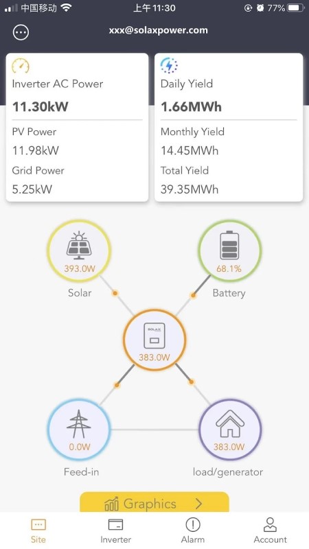 solaxcloudapp是主打设备检测功能的app,SolaxCloud手机版中可以更好的查看逆变器的相关运转状态,便捷的功能给你更好的体验,帮助你随时通过手机查看平台下设备状态,赶快来下载试试吧!