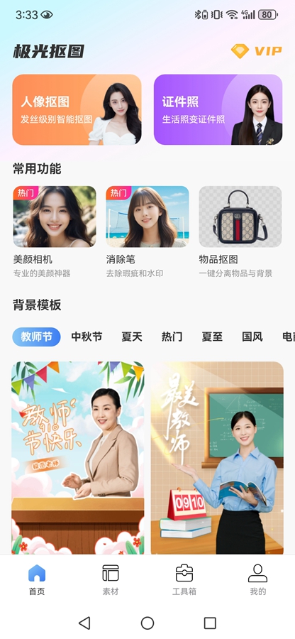 《极光抠图app》是一款由杭州冬恩网络科技有限公司开发的专业图像处理软件,集人物抠图、美颜相机和证件照处理于一体,为用户提供了全面而强大的图片编辑功能。这款应用以其智能AI识别技术和专业的边缘处理效果,在图像处理领域脱颖而出,成为众多用户喜爱的选择。