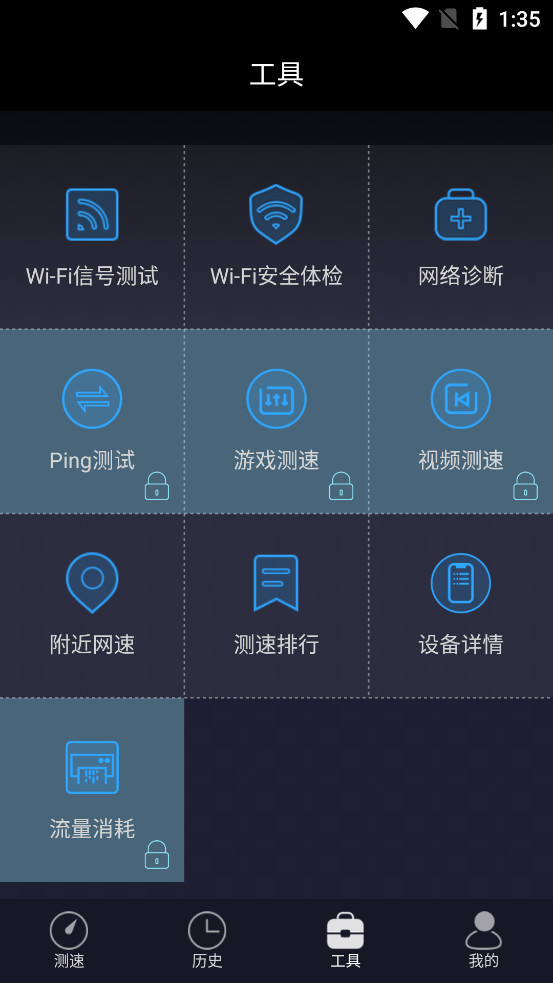 专业的网络测试、Wifi管理、信号测试等功能!