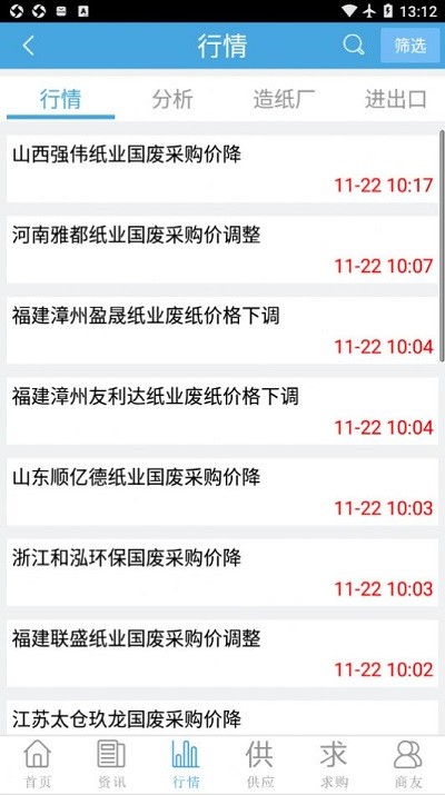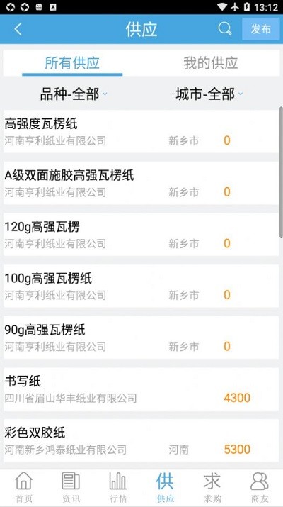 6.让您一目了然抓住商机供应,按照纸种、地区筛选供应信息;