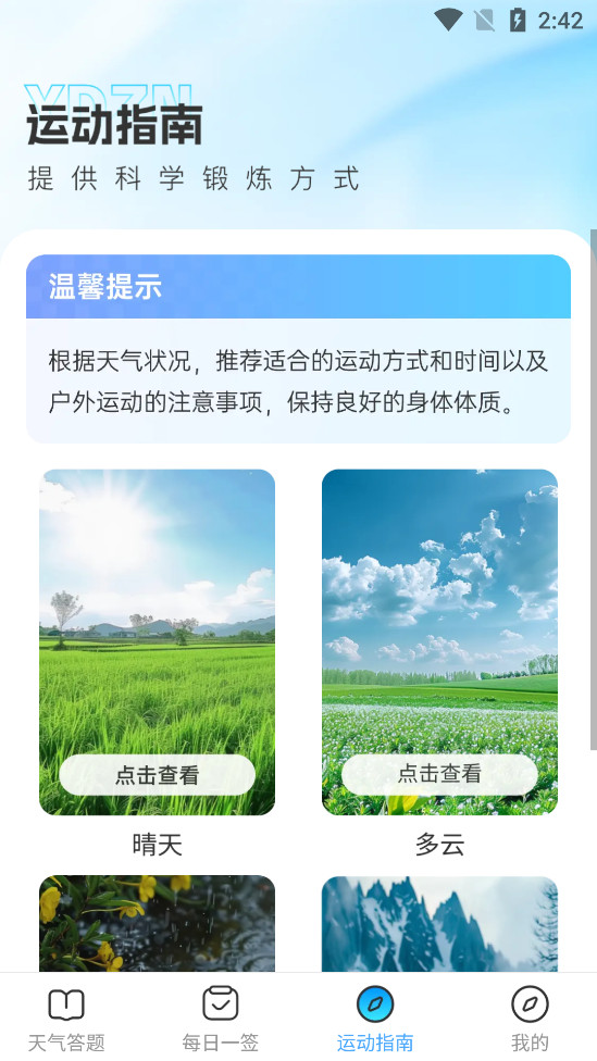 可以在晴雨之间查看运动指南,提供科学锻炼方式