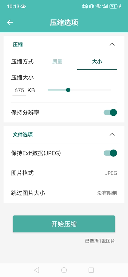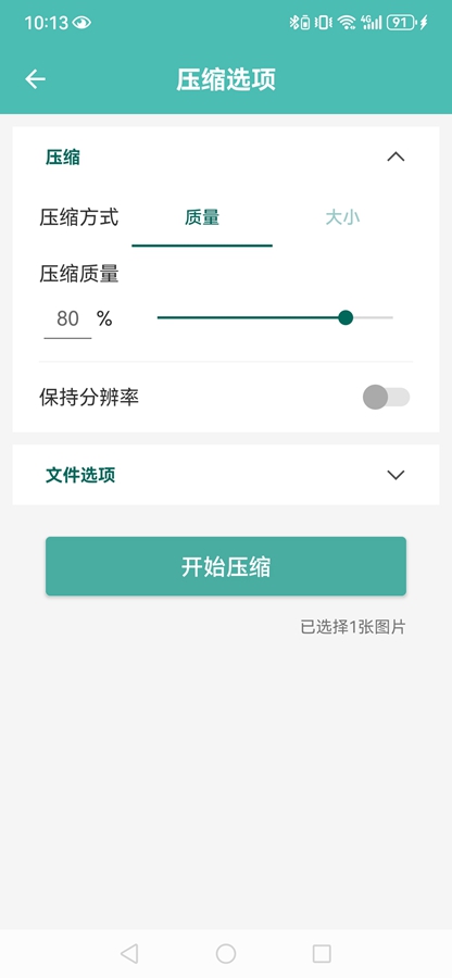 选择【质量】压缩方式,滑动可以选择质量