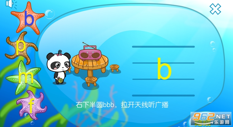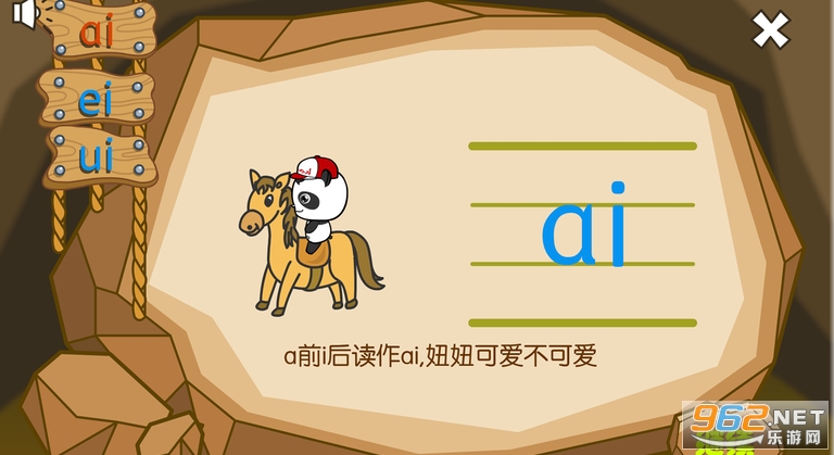 熊猫拼音是“熊猫乐园”专门为小朋友精心设计的互动类儿童学拼音软件,软件从儿童喜爱卡通动画游戏兴趣入手,带宝宝进入神秘刺激的拼音寻宝世界,在看动画、玩游戏的互动过程中不知不觉地学会拼音。