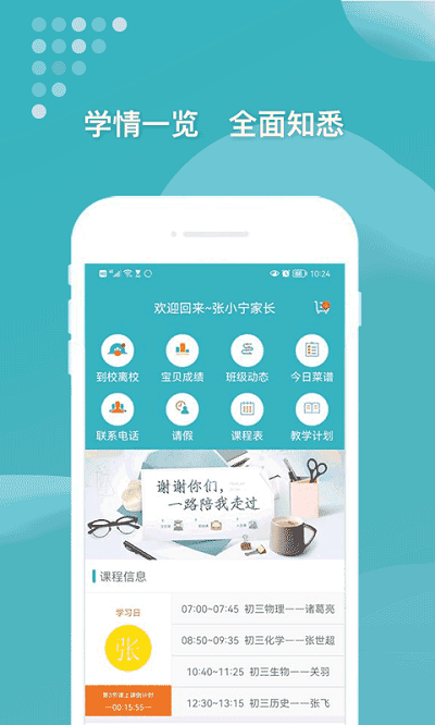 通过此APP家长可以及时全面地了解孩子的在校状态,包括课程安排、考勤信息、班级动态等