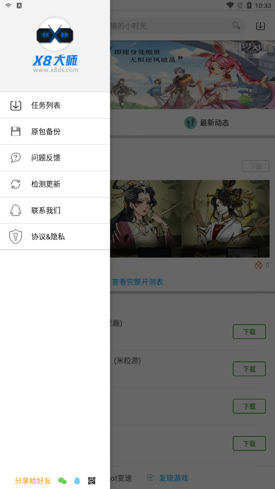 1、打开在本站下载的X8大师加速器,进入软件首页后,选择你想要玩的游戏并点击下载;