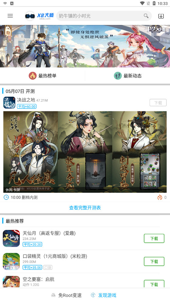 《x8大师加速器》是一款免root的手游加速工具,为手游爱好者提供游戏加速服务,支持自主选择游戏进行加速,可设置加速效果,还具备变速、游戏推荐、搜索及应用分享等功能,无需root即可使用,操作简单。适配网游与单机,是手游玩家提升游戏体验、加快通关速度的实用辅助工具。