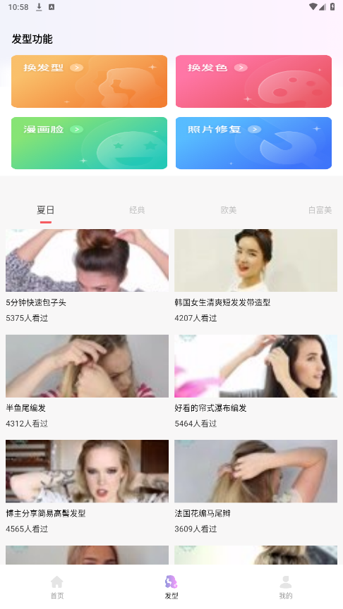 「一键换发型」智能拍照设计发型,秒速换发。