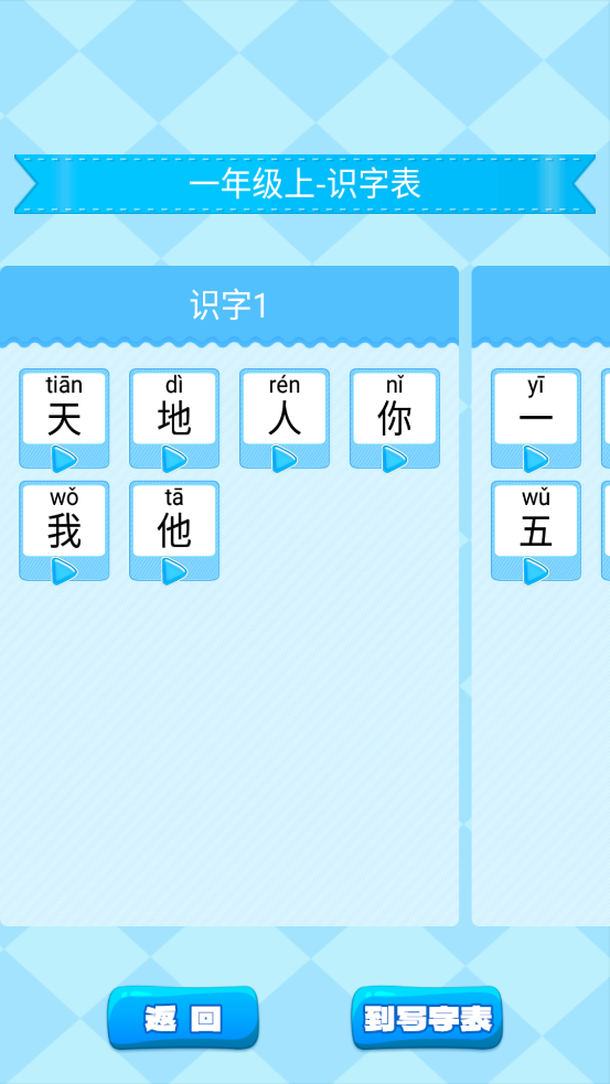 软件包含了小学识字表和写字表里面汉字的朗读、拼音、部首、笔画、组词、解释等的学习,也可以临摹里面的汉字,边写边学,方便孩子们快速学习汉字。