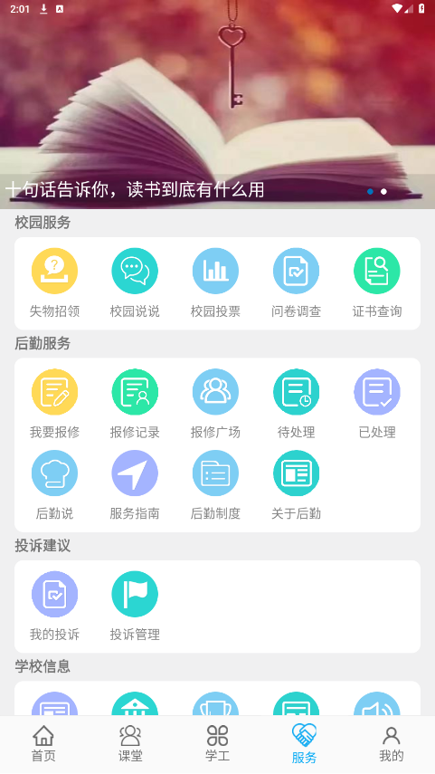 6.多功能服务:该应用致力于提供多功能服务,以满足不同用户群体的需求,包括学生、家长、校友和校园工作人员。