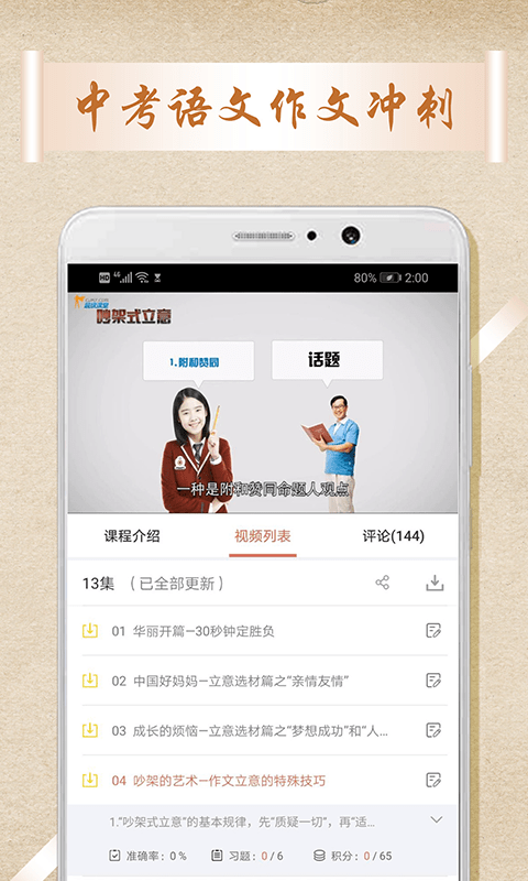 学生购买后,可以学习视频,练习作文