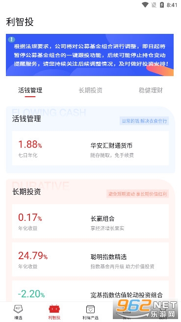 2、利活宝+:闲钱理财新玩法,一款集合了市场上优质同业存单指数基金的零钱管理专区,7天可赎回,申赎0费率;