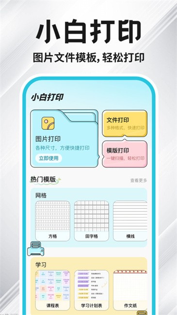 免费打印机手机app提供了多种打印方式,为有复印需求的用户打造了一个便捷打印助手,并且还包含了各种不同类型的打印模板,这样就可以直接选择使用,为打印工作效率的提升提供了有力帮助。