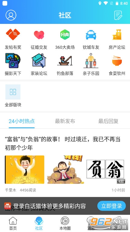 《白话猫》是广西三面科技有限公司专为钦州当地民众打造的一款一站式生活服务资讯软件,白话猫钦州360提供招聘、房产、征婚交友、家装、二手市场交易以及汽车资讯等多个方面的服务功能事项体验,能够很好的满足当地人民的日常生活需要,一起来下载体验吧!