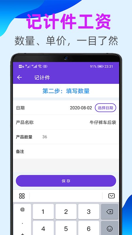 记录每天的计件产品种类和数量,快速计算工资,让自己的劳动成果一分不少。