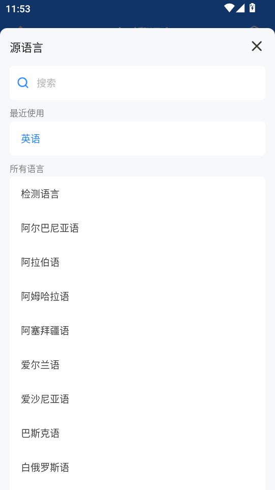 2、点击上方按钮,可以选择需要翻译的语言