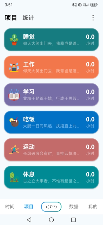 帮助您规划、记录自己的时间投入,学习、考研、工作必备的极简时间管理软件。可以帮助您记录:看书多长时间了、健身多长时间了、Coding多长时间了、看电视多长时间了等等。
